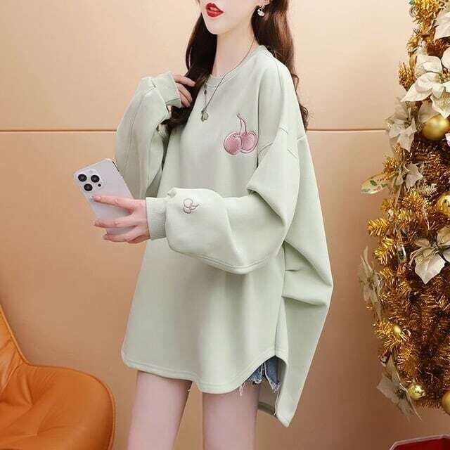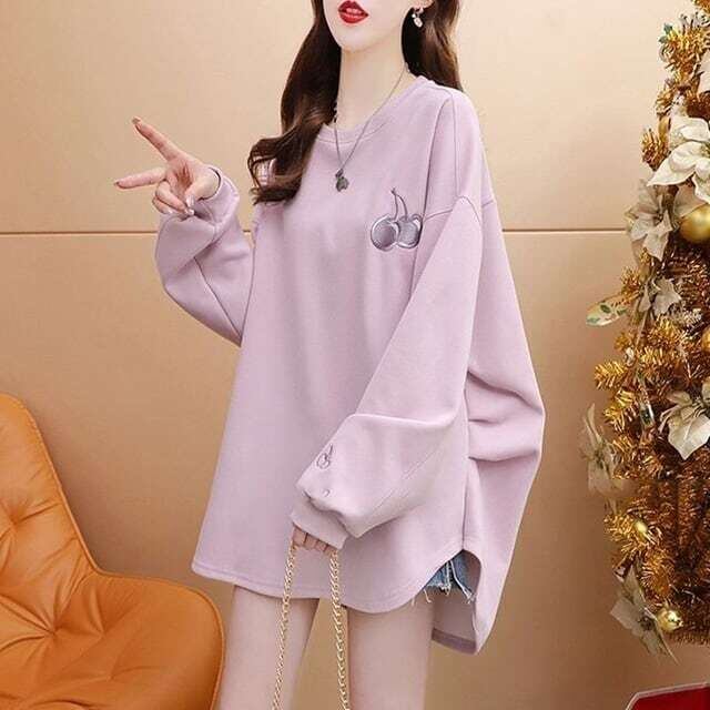 チェリー柄トレーナー プルオーバー ビッグシルエット ガーリー E479
