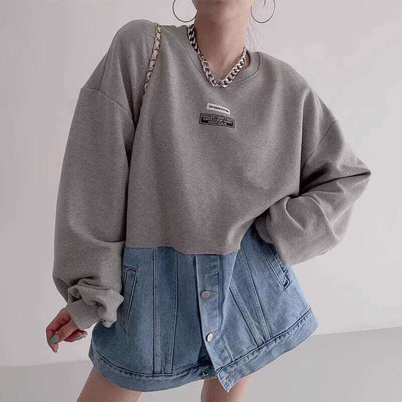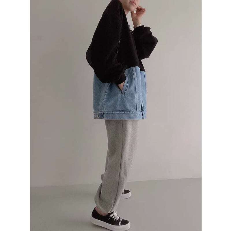 ドッキングトップス トレーナーデニム デザイントップス カジュアル E476