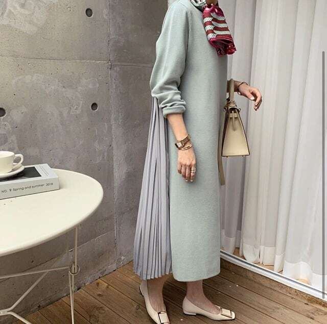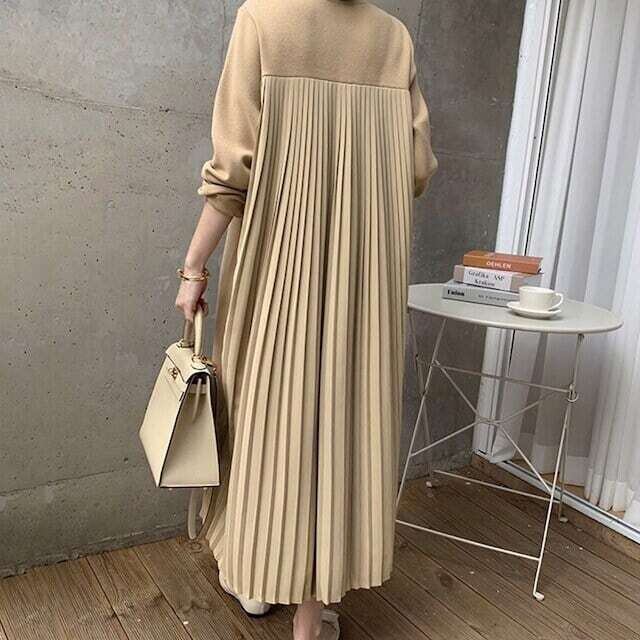 バックプリーツワンピース ロングワンピ エレガント お呼ばれ E485