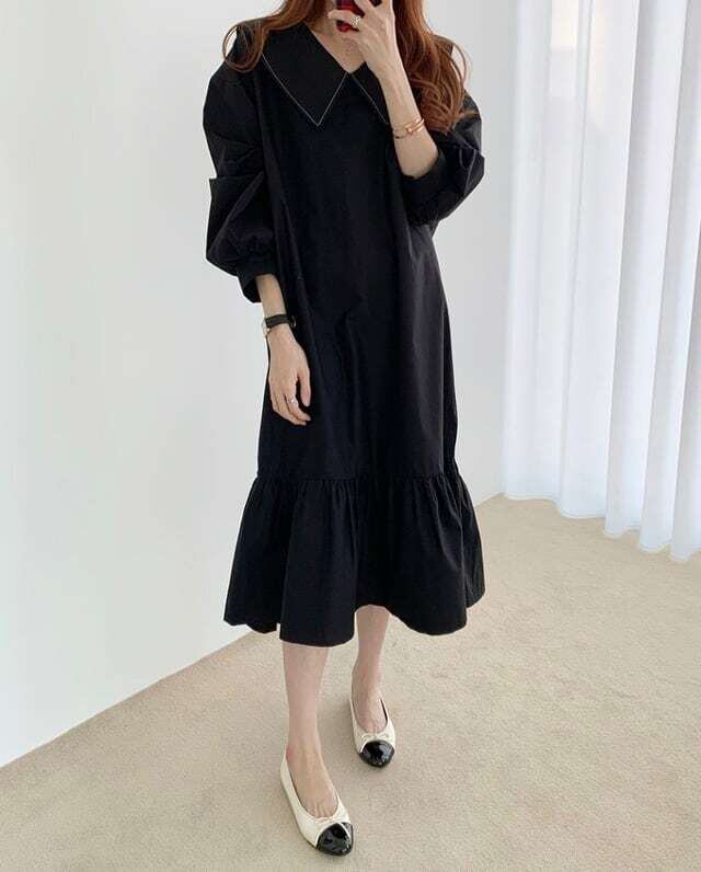 ビッグカラーワンピース 切替フレア セーラーカラー ガーリー E484