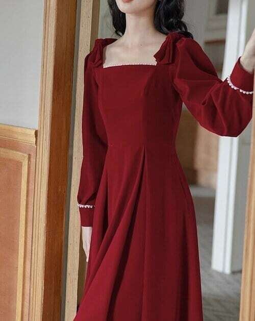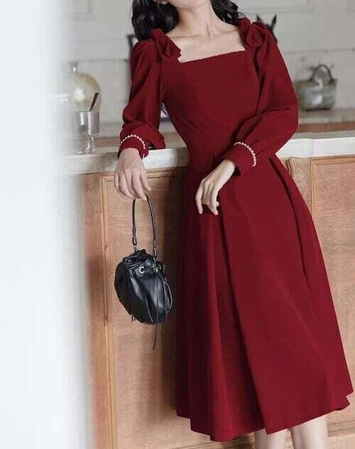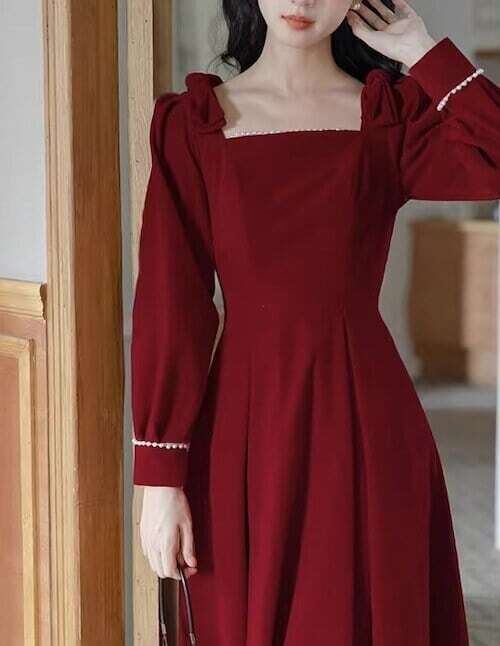 パールステッチワンピース ショルダーリボン スクエアネック ガーリー E562