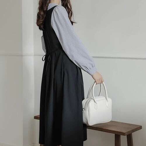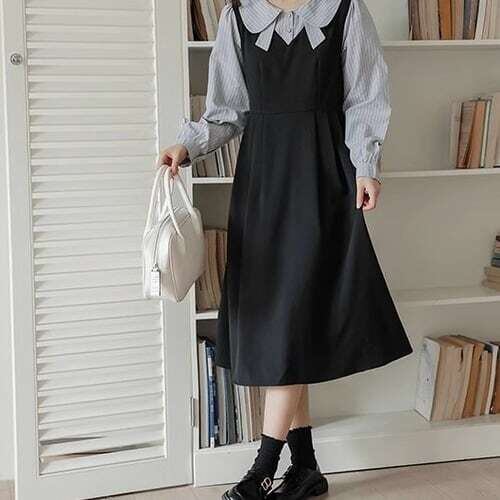 丸襟ワンピース ドッキングワンピース ストライプ柄 ガーリー E569
