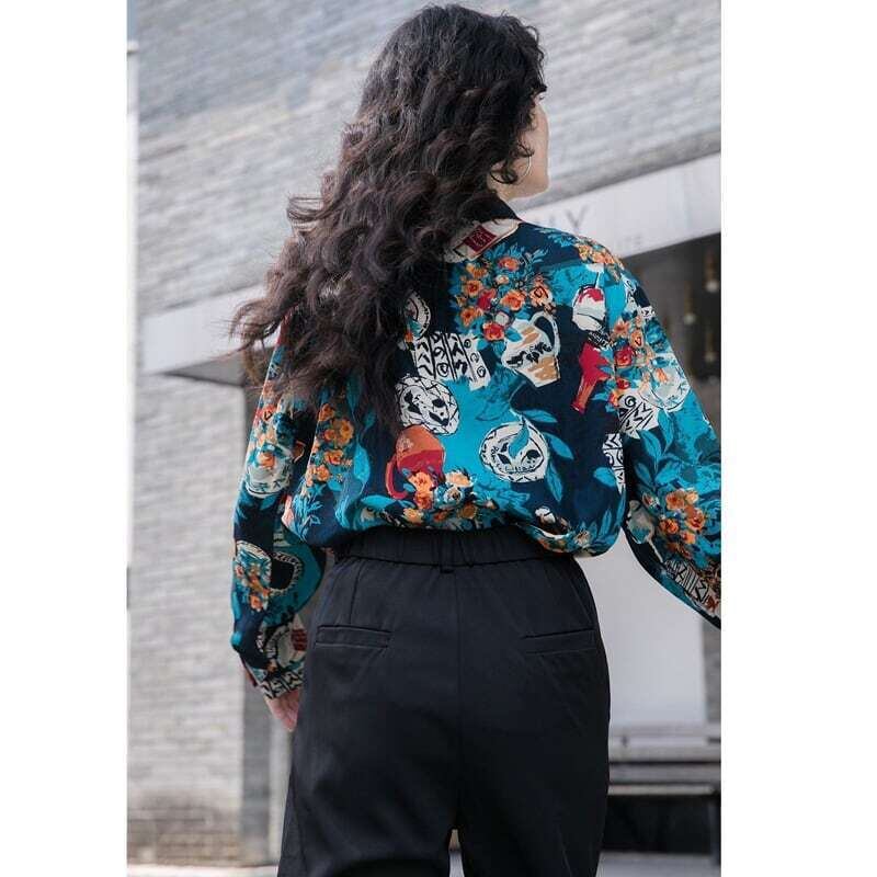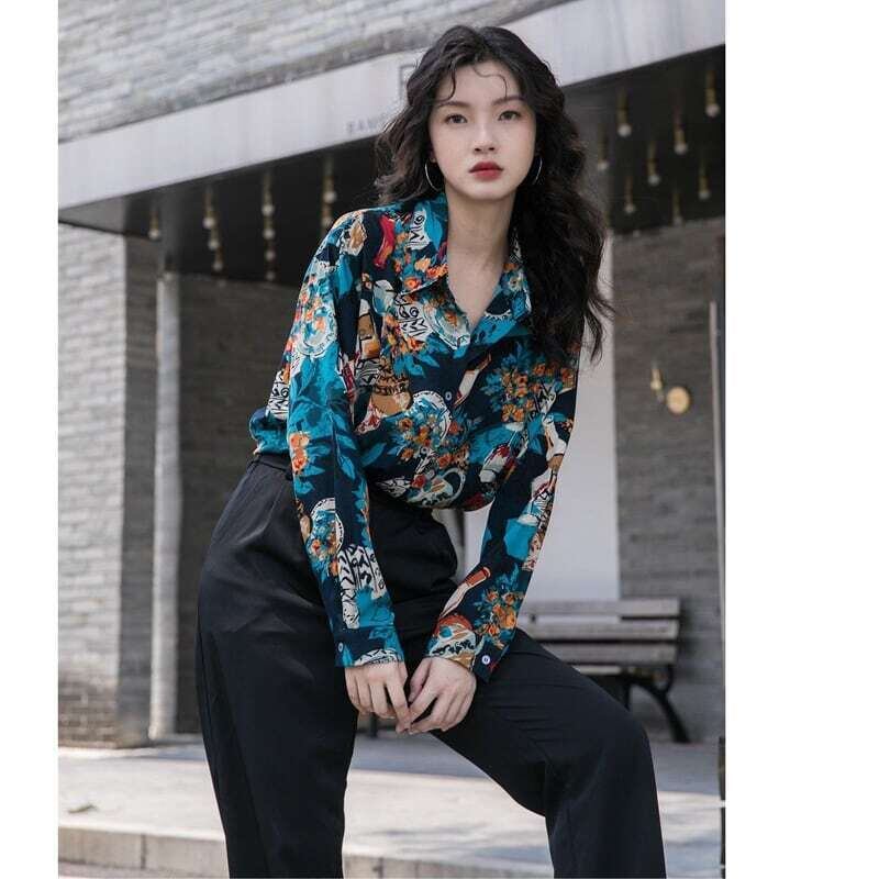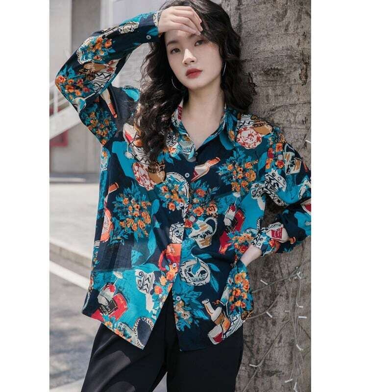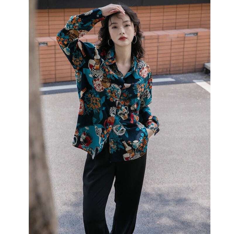 レトロ柄シャツ プリントシャツ 花柄 ブラウス カジュアル E449