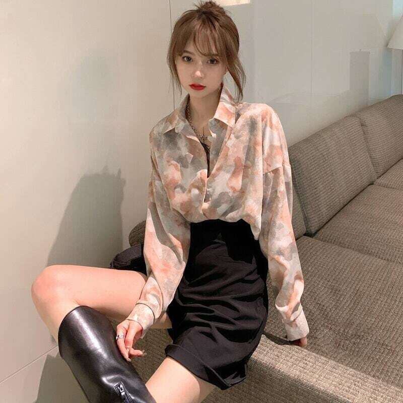 花柄シャツ ブラウス 油絵風シャツ ガーリー レトロ E450