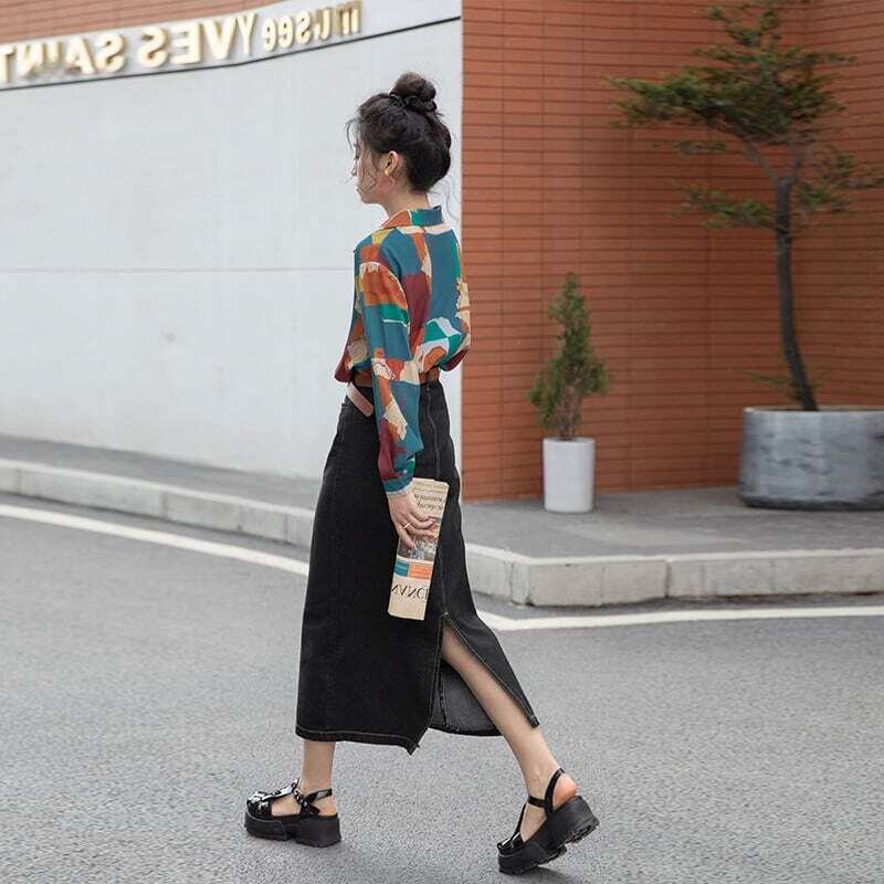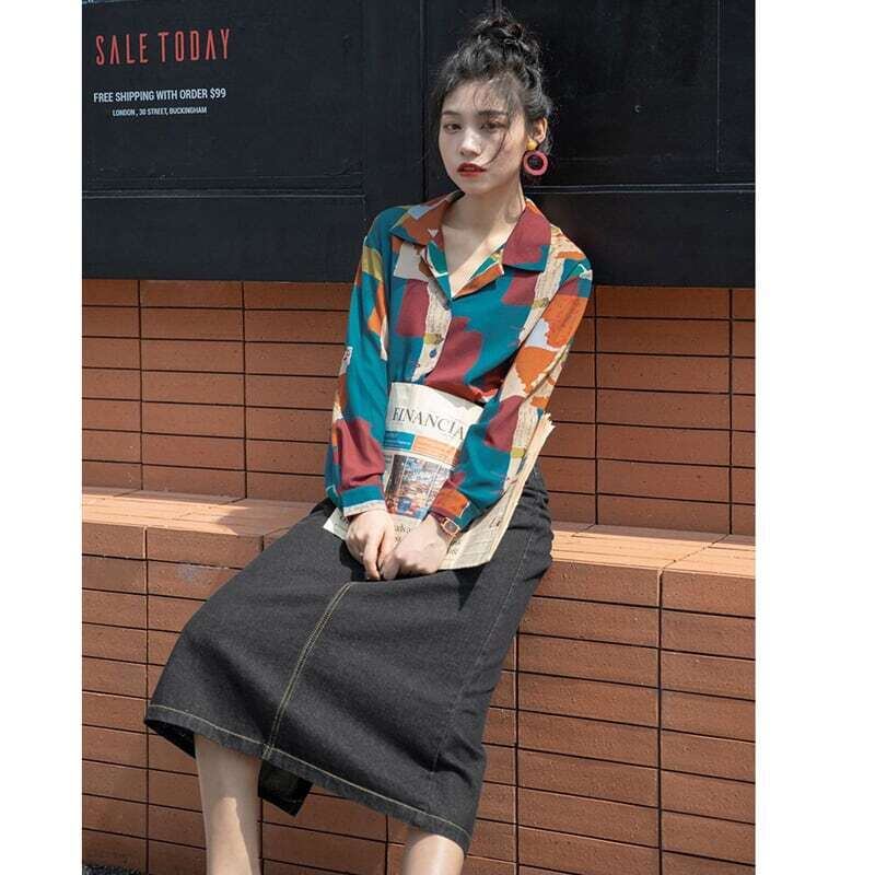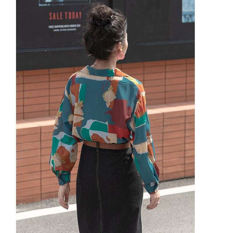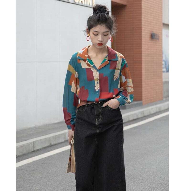 プリントシャツ 柄シャツ ブラウス カジュアル レトロ E447