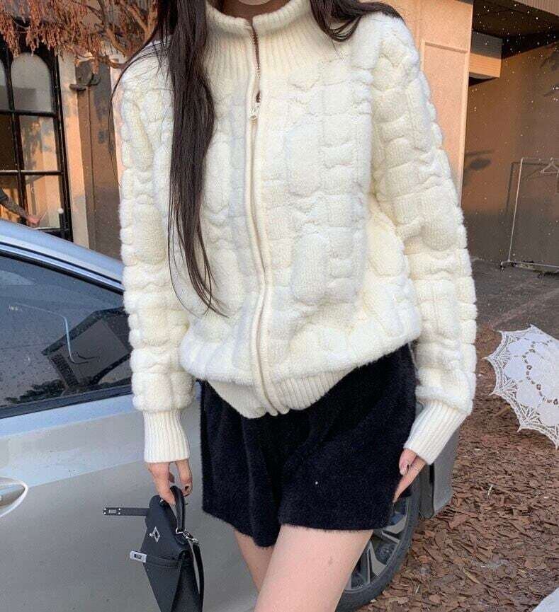 ジップアップセーター ハイネックニット エレガント カジュアル E703